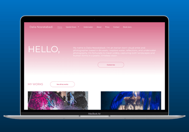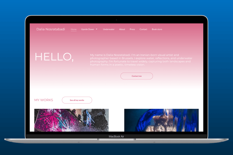 Dalia Nosratabadi — photographe basée à Bruxelles — a bénéficié d’un site web clair et visuellement fort pour présenter ses séries artistiques (notamment Upside Down et Gravity) et son univers photographique.