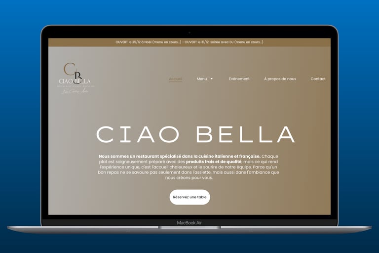 Ciao Bella à Charleroi allie cuisine italienne et française avec un design web innovant. Nous avons conçu un site moderne pour mettre en valeur leur menu et leur atmosphère unique. Découvrez-le sur :