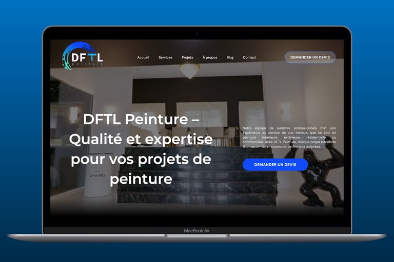 DFTL Peinture à Charleroi transforme vos intérieurs et extérieurs avec un design soigné et un rendu haut de gamme. Nous avons réalisé un site web moderne et immersif pour valoriser leur savoir-faire, leurs finitions impeccables et leur service sur-mesure.